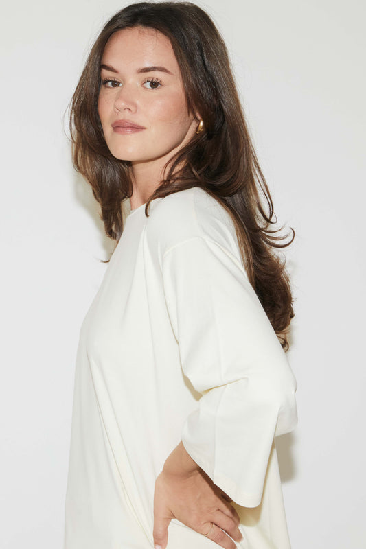 Discover our standout T-shirt collection, crafted from super soft, stretchy, and ultra-high-quality cotton. These luxurious everyday essentials are designed to enhance the female body with effortless style. Perfect for any occasion, depending on the styling—experience how true luxury feels with these versatile, laid-back pieces.
